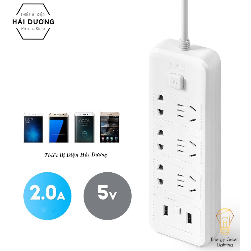 Thiết Bị Điện Gia Dụng > Mạch điện & Phụ tùng > Ổ cắm điện & Dây nối || Ổ Cắm Điện Thông Minh Chuyển Đổi Đa Chức Năng OD-318 dây 2m8 - Có Đầu Cắm USB Chuẩn Sạc An Toàn Chống GiậtCòn hàng