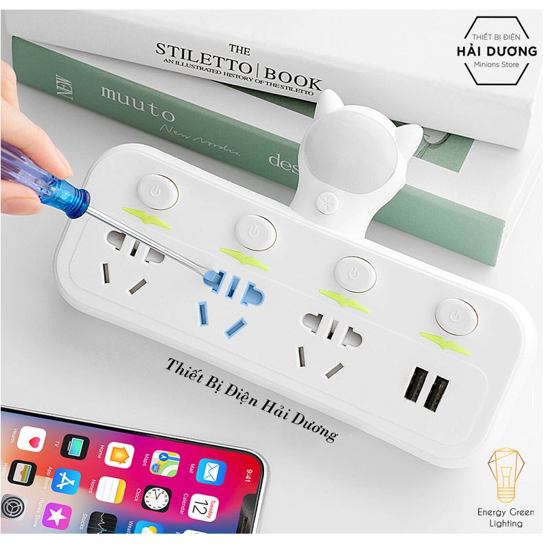 + OD-326 Đầu Hình Mèo 4 Ổ Cắm ( Tặng kèm 1 phích chuyển 3 chân thành 2 chân )