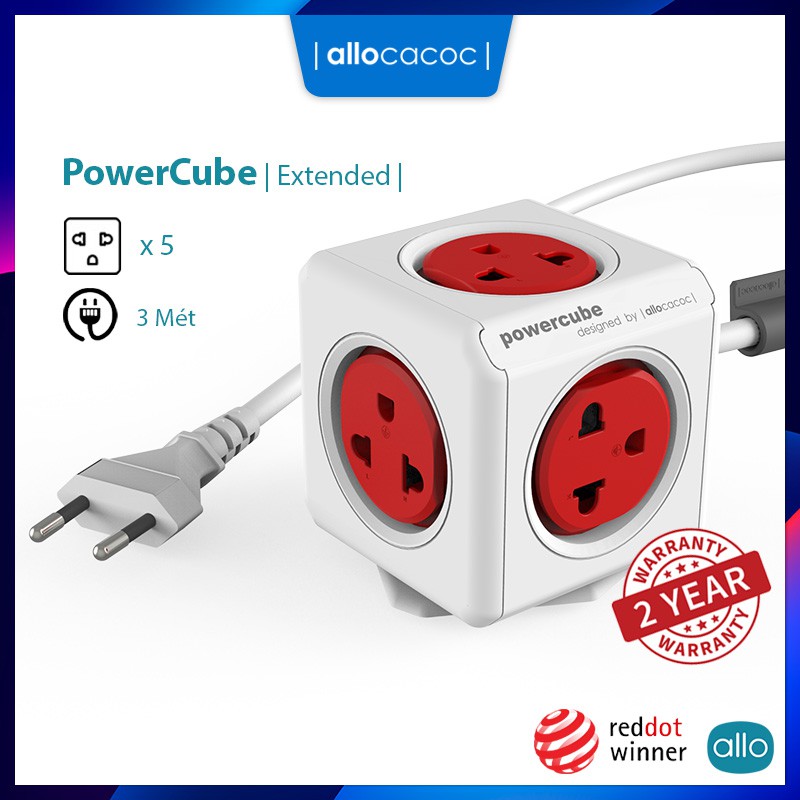 Giới thiệu Ổ Cắm Điện Thông Minh Đa Năng Allocacoc PowerCube Extended, Chống Giật Chống Cháy, Dây Cáp 3m, 5 Ổ Cắm, Bảo Hành 2 Năm