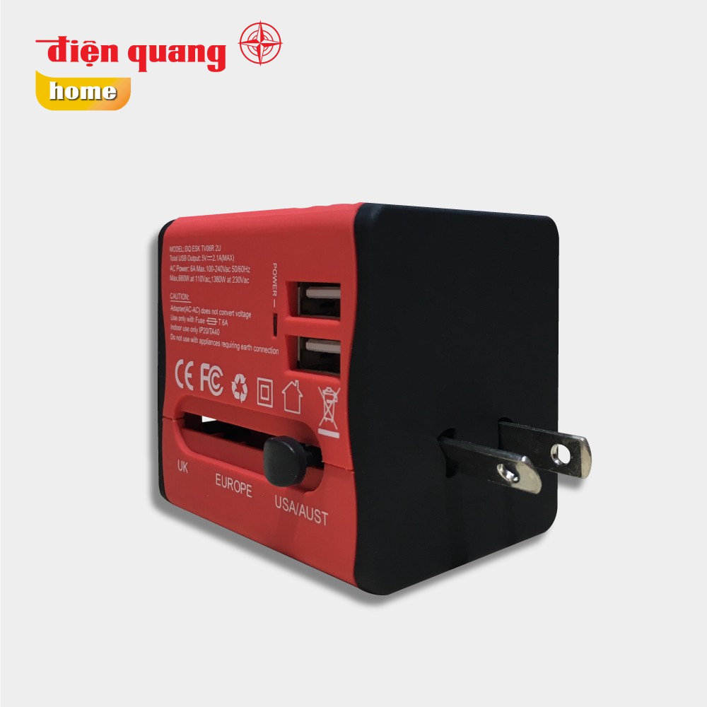 Ổ Cắm Điện Thông Minh Đa Năng Chuẩn Tất Cả Các Nước Quốc Tế Điện Quang, 2 cổng USB( Chuyên Dụng Đi Du Lịch Nước Ngoài )