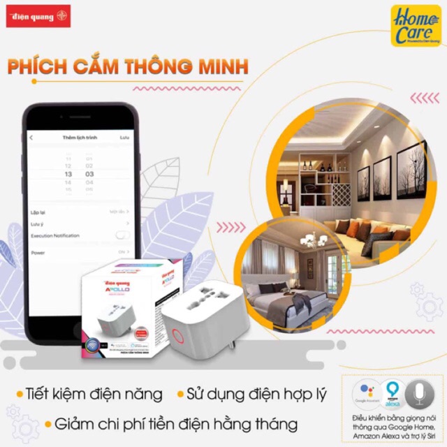 Ổ cắm điện thông minh Điện Quang, kết nối, điều khiển bằng Wifi BH 12 tháng.Bạn muốn một chiếc ổ cắm có thể bật tắt tự động, có thể điều khiển từ xa thông qua smartphone. Vâng điều đó là hoàn toàn có thật với sản phẩm của Điện Quang Apolo là ổ cắm thông minh kết nối wifi. Một thiết bị gia dụng thông minh đến từ Điện Quang Apolo, một thương hiệu từ lâu đời của Việt Nam chuyên đi đầu trong việc tạo ra các thiết ứng dụng công nghệ cao không chỉ là Ánh Sáng mà còn cả các Thiết Bị Điện Thông Minh.