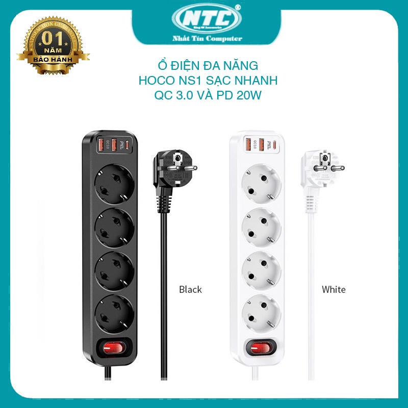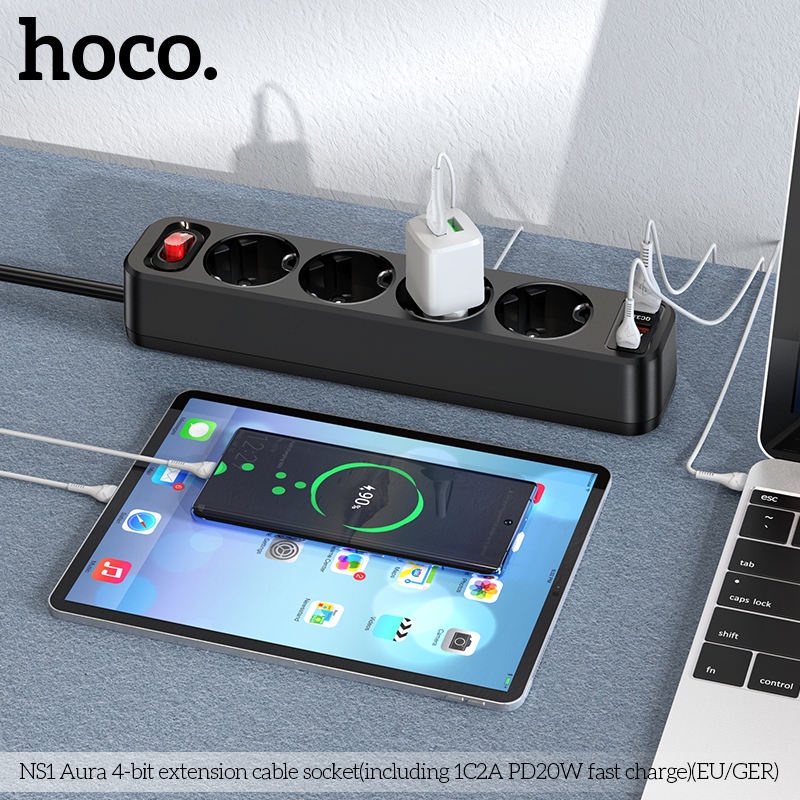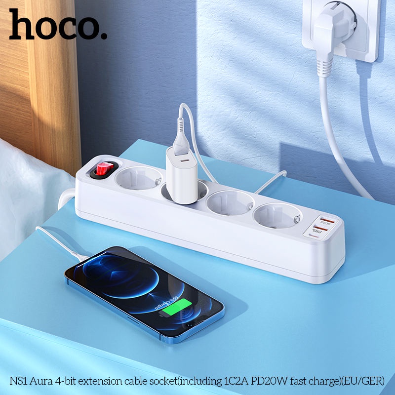 Giới thiệu Ổ cắm điện thông minh HOCO NS1 hỗ trợ 2 USB quick charge và 1 typeC PD 20W - công suất tải đến 4000W (nhiều màu)