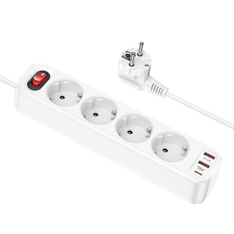 Thiết Bị Điện Gia Dụng > Mạch điện & Phụ tùng > Ổ cắm điện & Dây nối || Ổ cắm điện thông minh HOCO NS1 hỗ trợ 2 USB quick charge và 1 typeC PD 20W - công suất tải đến 4000W (nhiều màu)Còn hàng