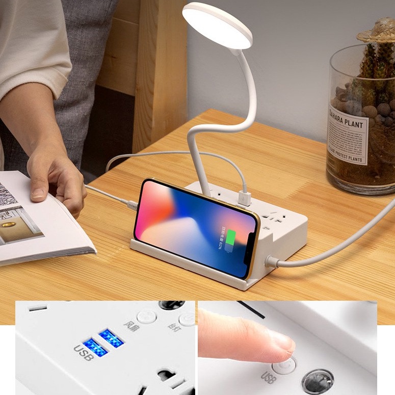 Nhà cửa & Đời sống > Dụng cụ & Thiết bị tiện ích > Dụng cụ > Khác || Ổ cắm điện thông minh kiêm đèn bàn có quạt giá đỡ điện thoạiCòn hàng