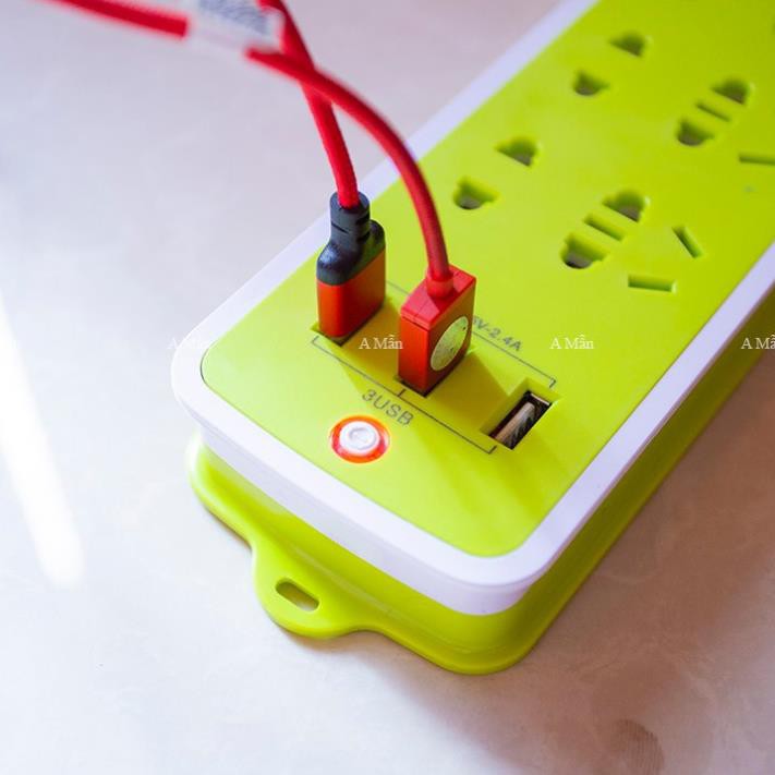 Ổ Cắm Điện Đa Năng có tới 6 ổ cắm thông thường và 3 ổ cắm USB. Vì Vậy khách hàng có thể cắm quạt, ti vi,... các vật dụng gia đình khác