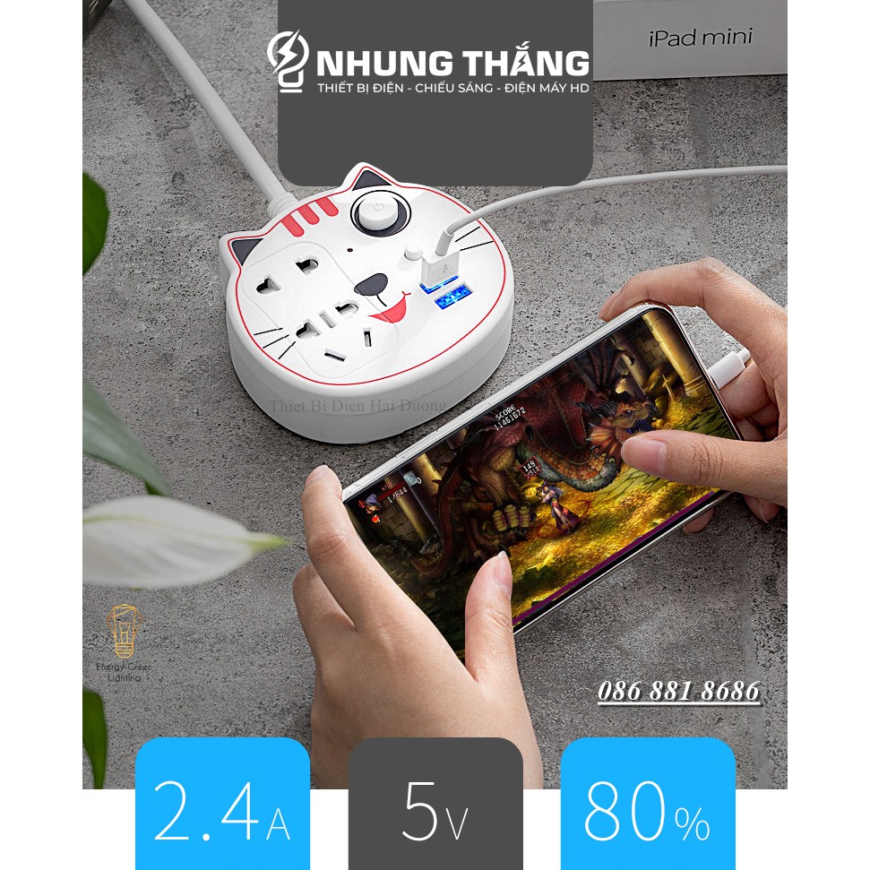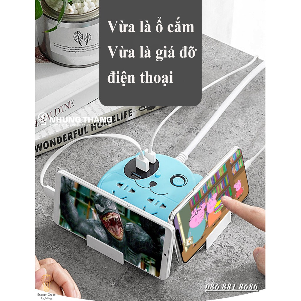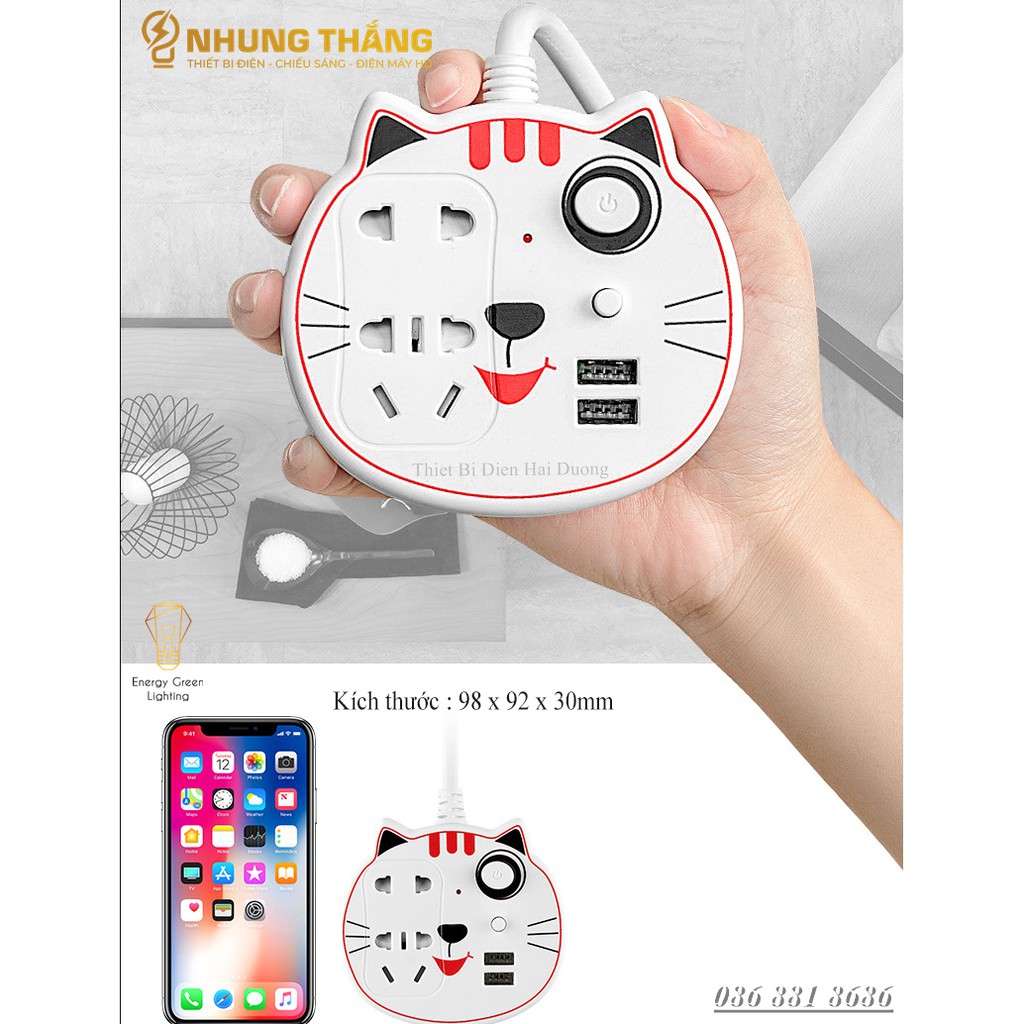 Ổ Cắm Điện Thông Minh OD-315 - Mặt Cún , Mặt Mèo Siêu Dễ Thương - Dây Điện Dài 2m8 - Tặng Kèm Phích Chuyển Đổi