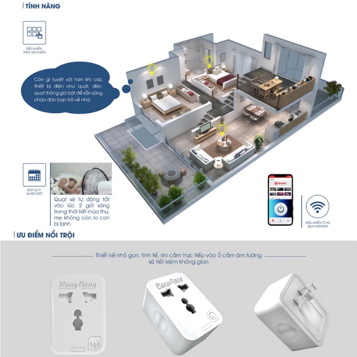 Ổ cắm điện thông minh Rạng Đông 16A , Ổ cắm điện điều khiển bằng wifi 3g 4g công suất 3500w- Ổ cắm thông minh Wifi Rạng Đông giúp điều khiển tất cả các thiết bị điện trong nhà dễ dàng mọi lúc mọi nơi trên điện thoại