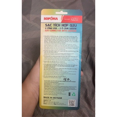 Ổ cắm điện thông minh SOPOKA tích hợp cổng USB là sản phẩm có thiết kế độc đáo, nhỏ gọn, tinh tế gồm:-2 cồng sạc USB (1A,2A) thông minh tự cân bằng điện