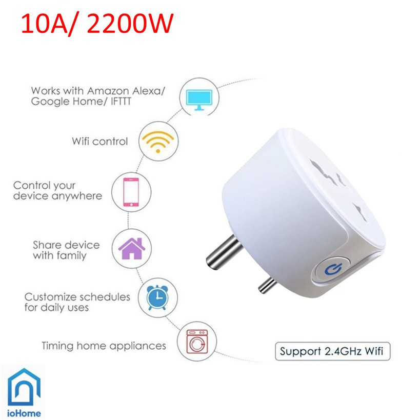Ổ cắm điện thông minh Tuya Smart Life 10A kết nối Wifi IOHOME - Dùng mọi loại phích cắm