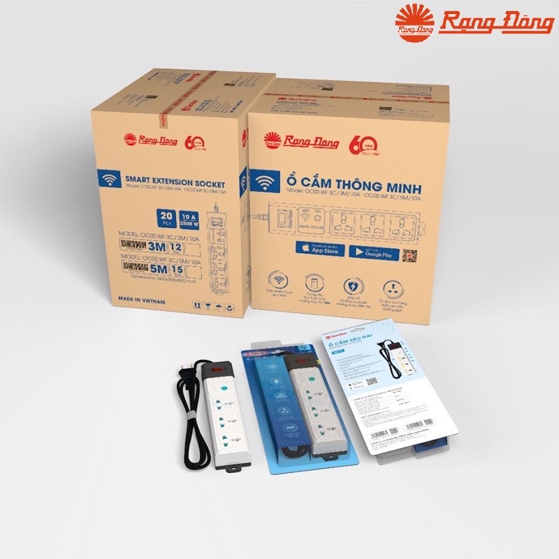 Ổ cắm điện thông minh Rạng Đông 2500w 3ổ cắm,Tuỳ chọn, có 2 mẫu chọn lựa dây dài: