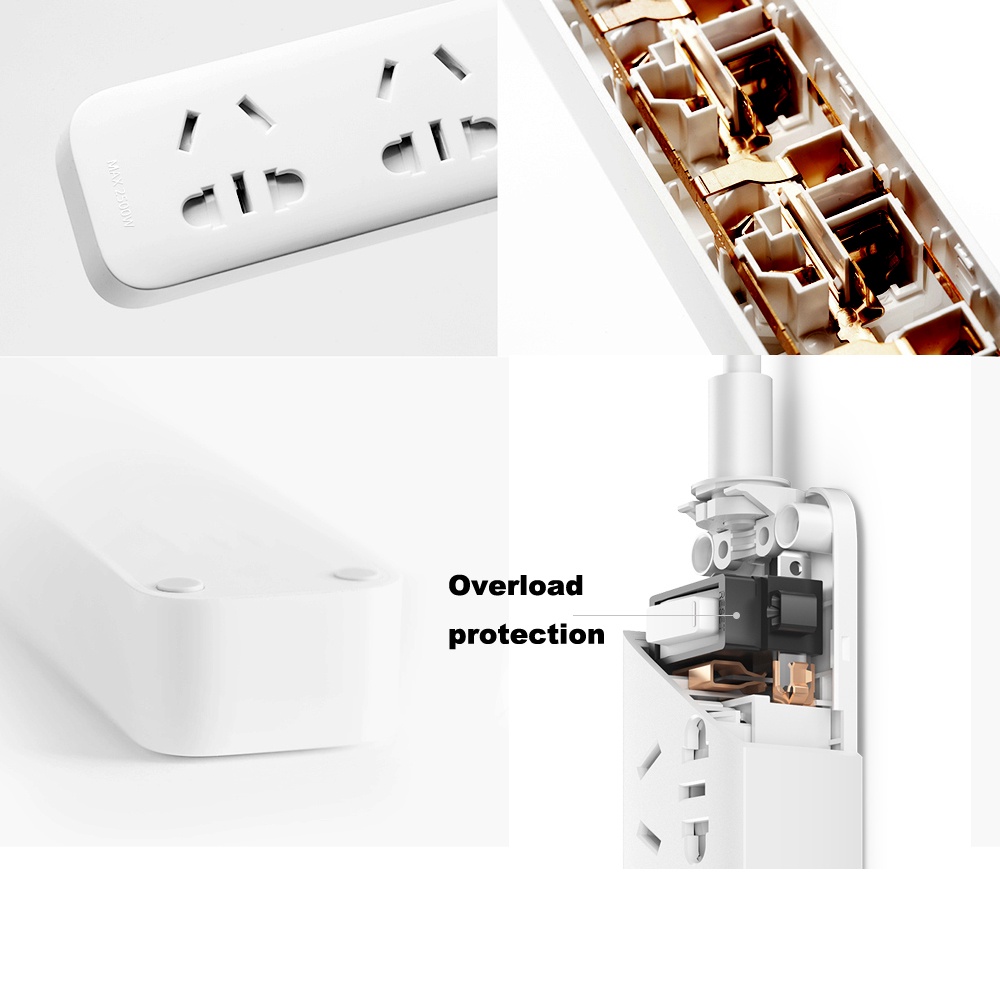 Bên dưới công tắc nhấn tắt/mở , Xiaomi Power Strip sử dụng mạch bảo vệ an toàn , có khả năng tự động ngắt nếu xảy ra hiện tượng quá tải hoặc hiện tượng bất thường