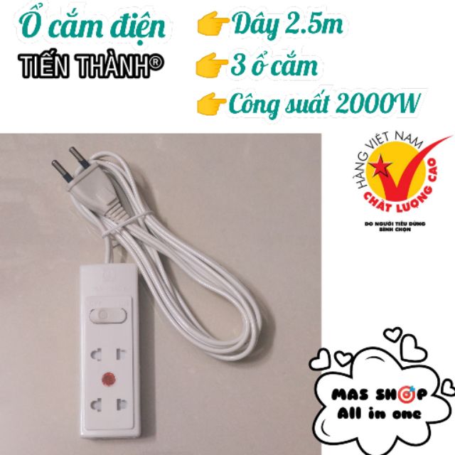 Nhà cửa & Đời sống > Dụng cụ & Thiết bị tiện ích > Dụng cụ > Khác || Ổ cắm điện Tiến Thành® dây 2.5m công suất 2000W (Hàng Việt Nam chất lượng cao)Còn hàng
