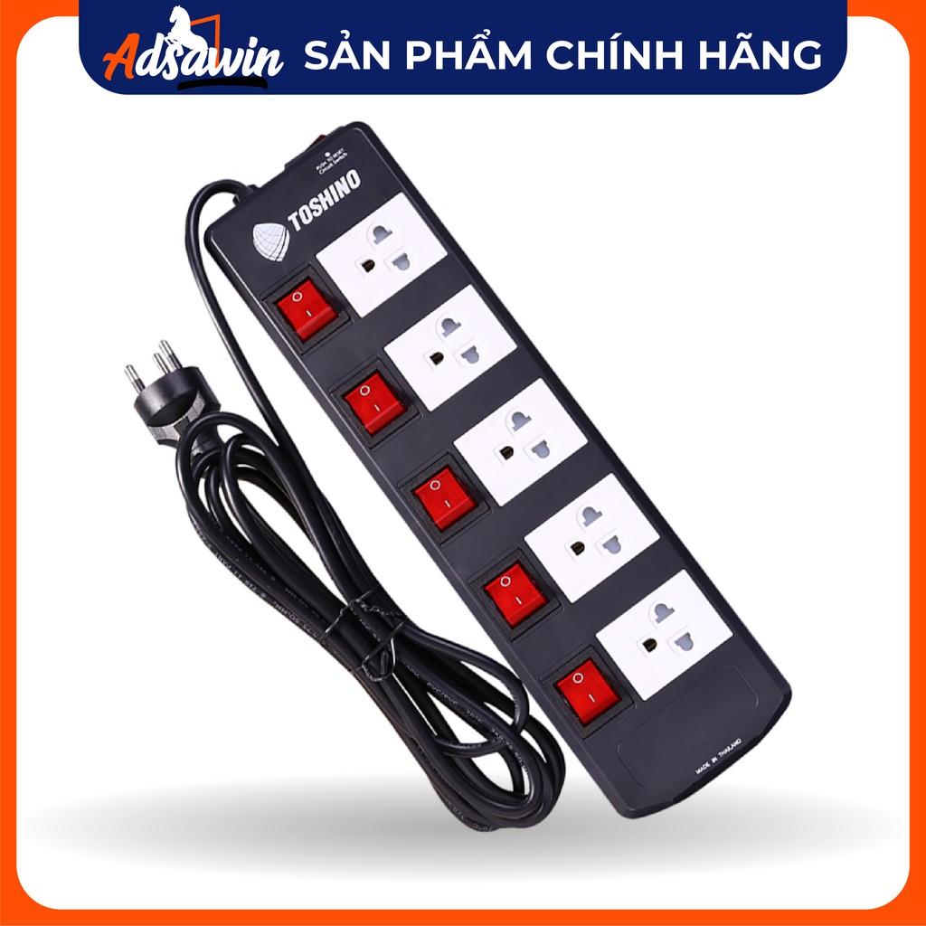Ổ cắm điện TOSHINO Thái Lan mỗi ổ có 1 công tắc tắt bật, ổ chống sét, lọc nhiễu dòng điện TIS515 dài 3M- TIS515