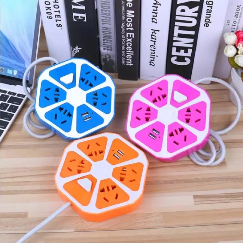 Điểm nổi bật- Ổ cắm điện đa năng trái cam với 5 lỗ cắm 3 chấu và 2 cổng USB cho phép người dùng sạc pin smartphone mà không cần tới củ sạc.