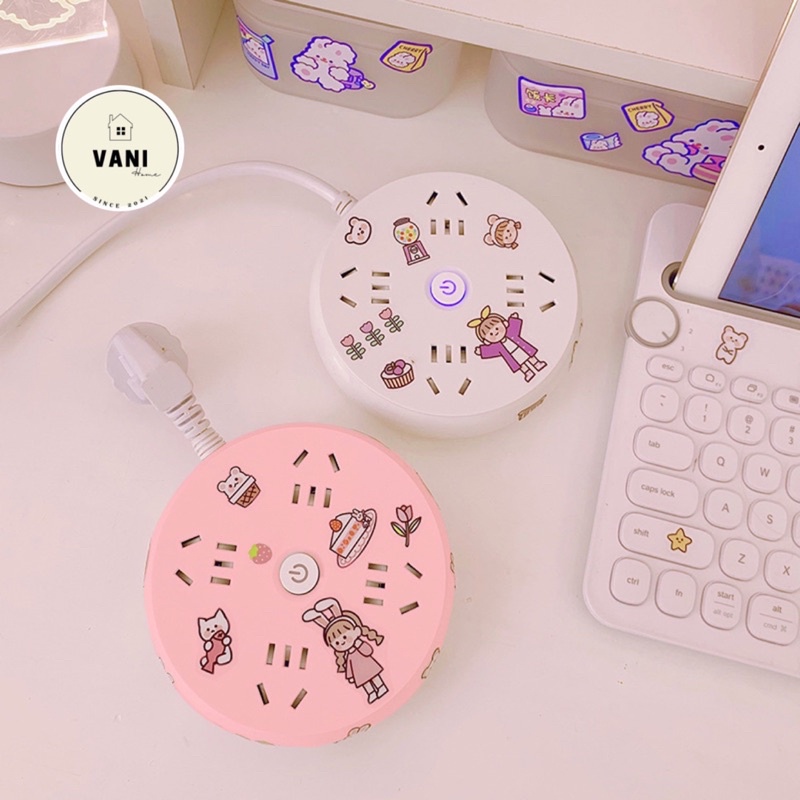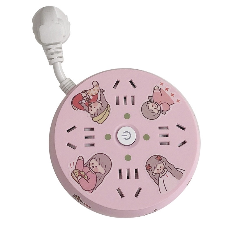 Thiết Bị Điện Gia Dụng > Mạch điện & Phụ tùng > Ổ cắm điện & Dây nối || Ổ cắm điện tròn tặng kèm stiker dễ thương decor bàn học xinh xắn - Ổ điện đa năng chống giật 4 ổ cắm dây dài 1,8mCòn hàng