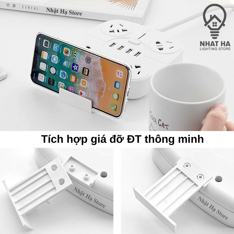 + Hình Vuông : 4 ổ cắm điện - 4 ổ cắm USB (Tặng kèm 1 phích chuyển 3 chân thành 2 chân màu trắng)
