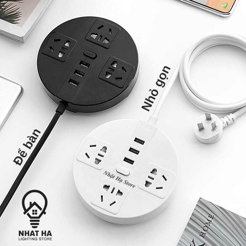 + Hình Tròn : 3 ổ cắm điện - 3 ổ cắm USB (Tặng kèm 1 phích chuyển 3 chân thành 2 chân màu trắng)