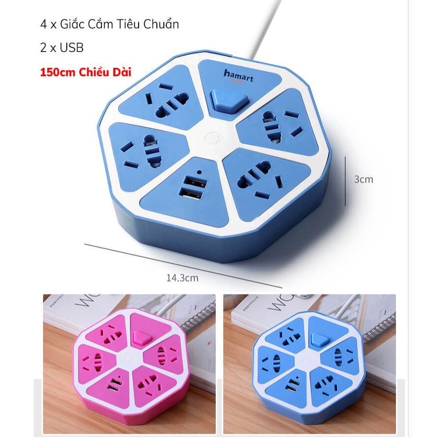 Ổ Cắm Điện USB Lục Giác Ổ Điện Đa Năng Sạc Điện Thoại Tiện Lợi [4 CỔNG 2 USB CÔNG TẮC NGUỒN]