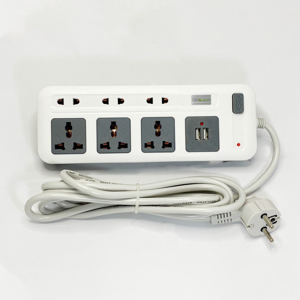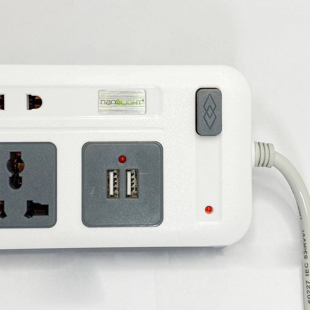 Ổ Cắm Điện USB Nanolight 6 lỗ cắm và 2 cổng USB PS-02