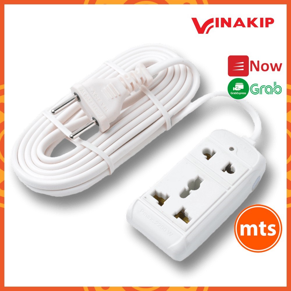 Ổ cắm điện Vinakip S11 liền dây du lịch đa năng 2 lỗ 2 chạc và 3 chạc 2200W 10A 250V S11 oc16 oc17- Minh Tín Shop