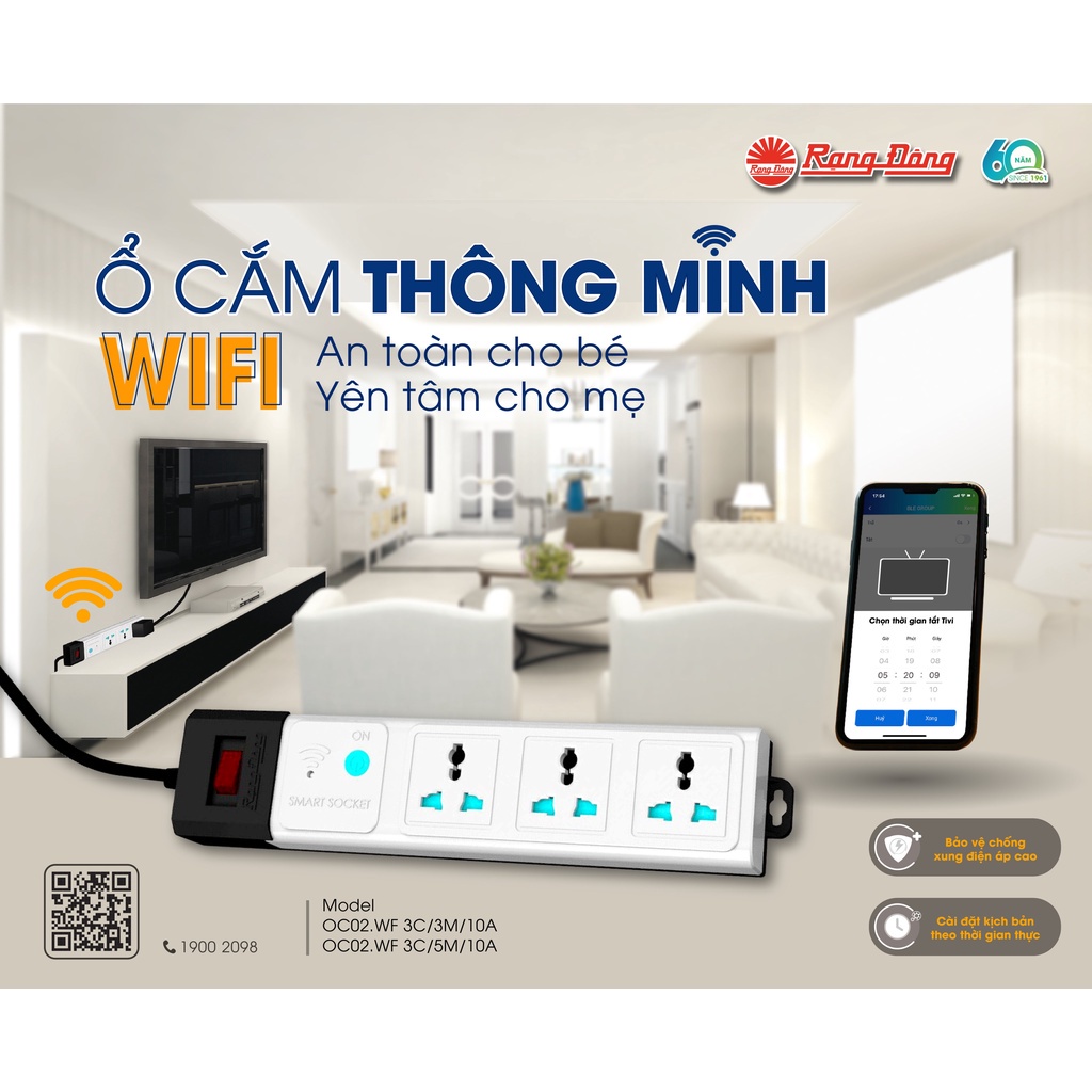 Thiết Bị Điện Gia Dụng > Mạch điện & Phụ tùng > Ổ cắm điện & Dây nối || Ổ Cắm Điện Wifi Rạng Đông-Điểu Khiển Bật Tắt-Kết Nối Wifi-Bảo Hành 12 ThángCòn hàng