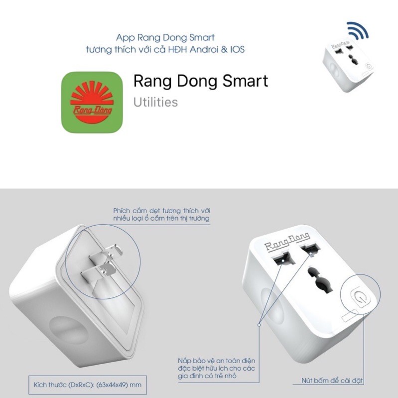 Ổ cắm điện wifi Rạng Đông khiển tắt mở bằng wifi