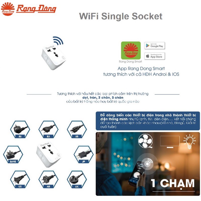 Thiết Bị Điện Gia Dụng > Mạch điện & Phụ tùng > Ổ cắm điện & Dây nối || Ổ cắm điện wifi Rạng Đông khiển tắt mở bằng wifiCòn hàng