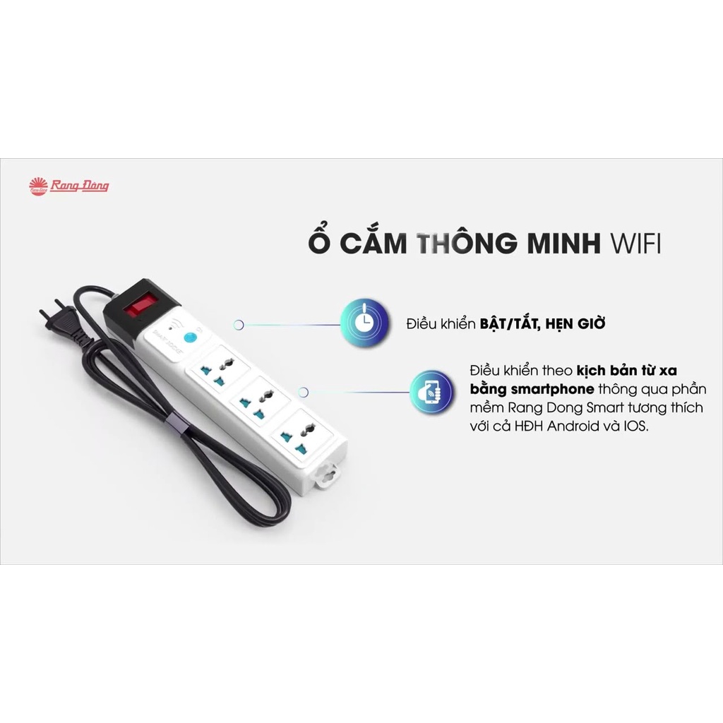 Thiết Bị Điện Gia Dụng > Mạch điện & Phụ tùng > Ổ cắm điện & Dây nối || Ổ Cắm Điện WIFI Thông Minh Rạng Đông dây dài 3m 5m, Chống giật, chống xung điện, điều khiển từ xa App RangDongSmartCòn hàng
