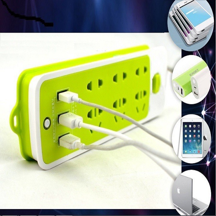 Ổ cắm điện xanh thông minh 3 cổng USB tiện lợi và 6 lỗ cắm đa năng