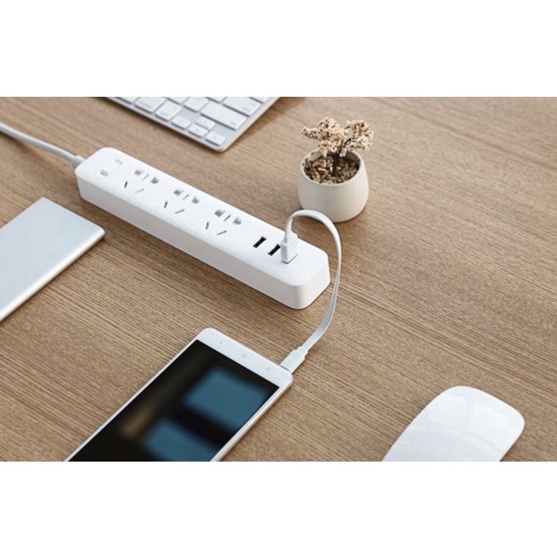 -Ổ cắm trang bị 3 jack cắm, Mỗi jack cắm đều hỗ trợ cả chuẩn đầu cắm 3 chấu và đầu 2 . Thích hợp cho nhiều thiết bị và nhiều thị trường khác nhau. Bên cạnh các jack cắm thông thường ổ cắm Mi power strip còn trang bị thêm 3 cổng USB, cho phép lấy điện trực tiếp để sạc cho các thiết bị di động mà không cần đến những củ sạc điện thoại.