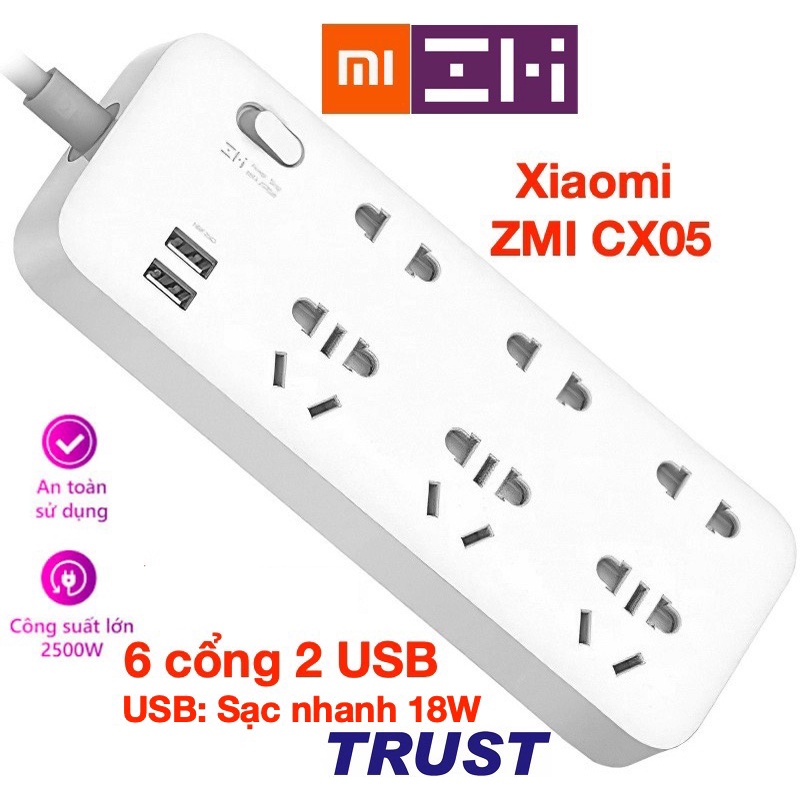 Ổ cắm điện ZMI Power Strip 6 cổng 2 USB ZMI CX05 - Chính Hãng
