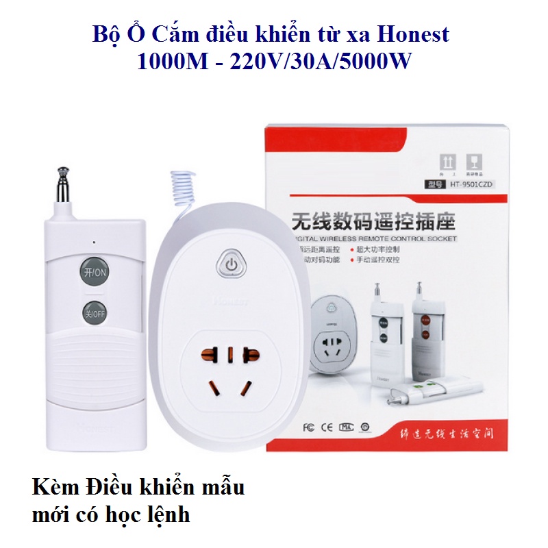 Ổ Cắm Điều Khiển Từ Xa 1ĐK,2ĐK Công Suất Lớn Honest 220v/30A/5000W - 1000m mẫu mới nhất có học lệnh