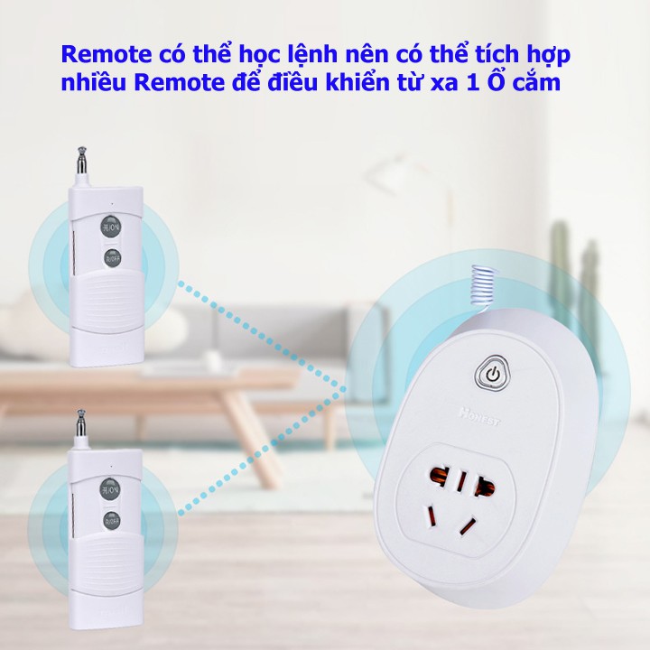 Mô tả sản phẩm Ổ cắm điều khiển từ xa 1 km công suất lớn Honest mẫu mớiỔ cắm điều khiển qua sóng RF xuyên tường tiện dụng