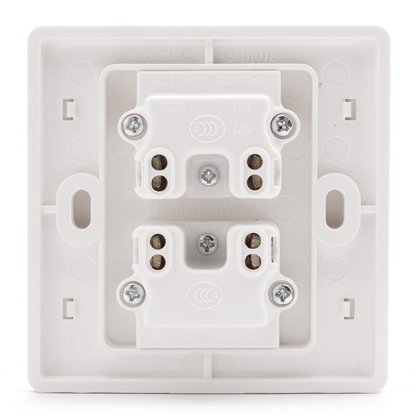 Ổ cắm đôi 2 chấu 10A dùng cho chấu tròn và dẹt Simon series 50 51072