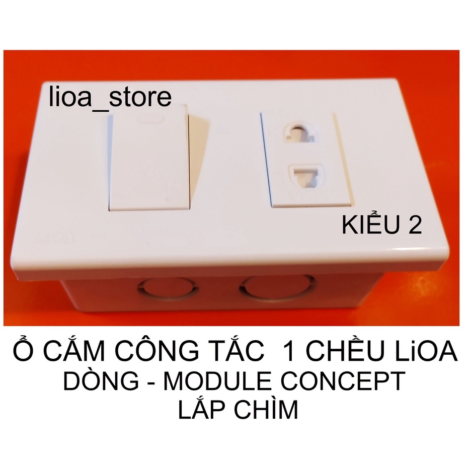Ô CẮM ĐƠN 2 CHẤU VÀ CÔNG TẮC 1 CHIỀU LiOA VỚI MẶT MODULE CONCEPT.