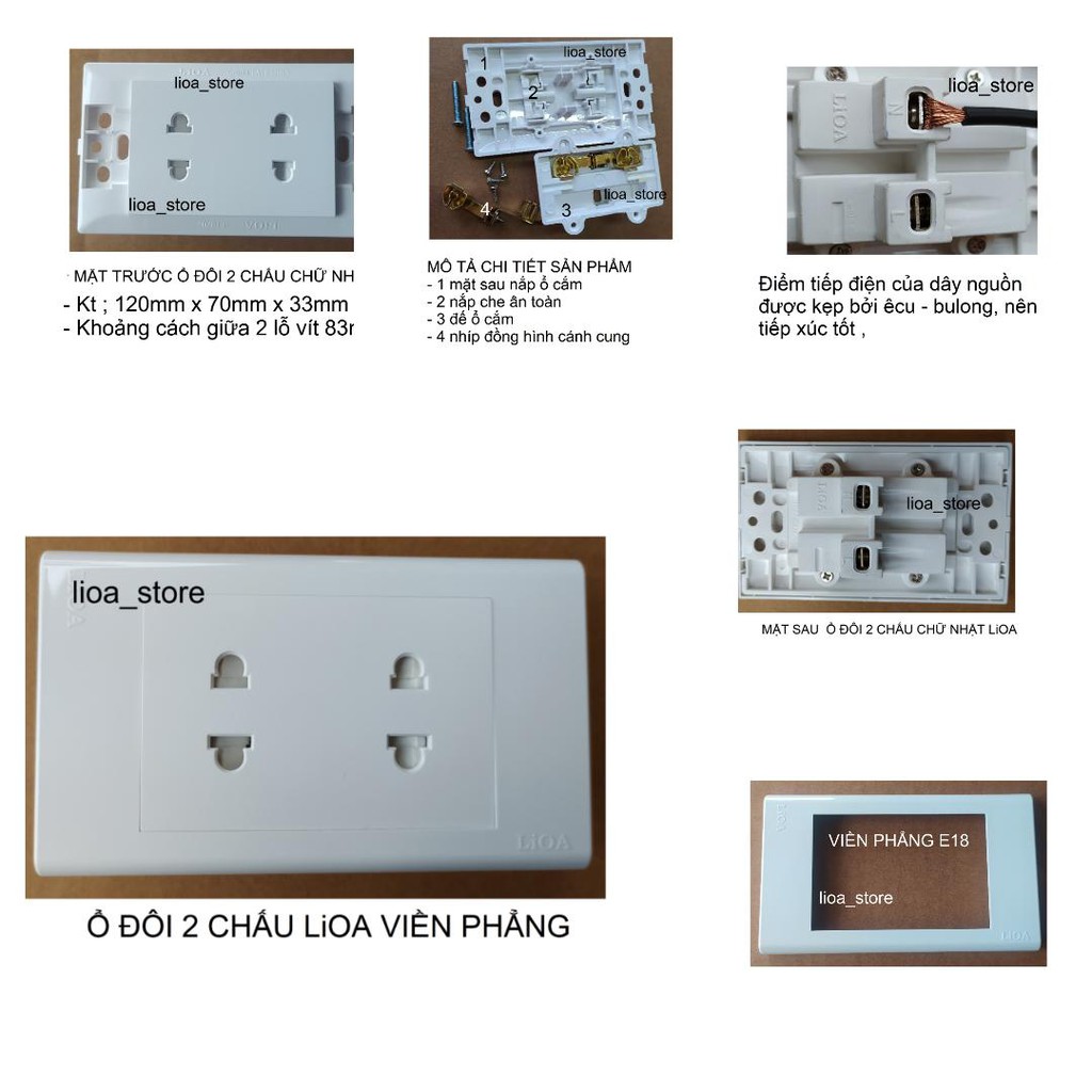 Ổ CĂM ( ĐƠN,ĐÔI, BA ) 2 CHẤU CHỮ NHẬT LiOA( VIỀN PHẲNG)