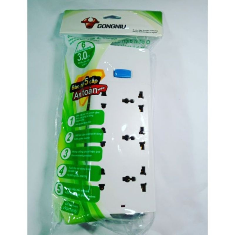 Giới thiệu Ổ cắm GONGNIU đa năng chống sét - 6 ổ 1 công tắc- GNVN-S1330-30 ( 3M )
