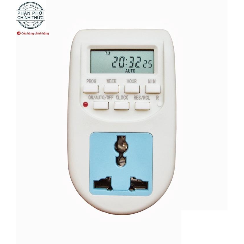 * Độ bền cao * Chất liệu cao cấp * Tiện lợi cho gia đình * An toàn cho người sử dụng * Kiểu dáng hiện đại, nhỏ gọnChức năng: Tự động bật tắt các thiết bị điện được cắm vào theo thời gian đã cài đặt trước Ứng dụng: Hẹn giờ tắt mở bình nước nóng vào buổi sáng và buổi chiều; Hẹn giờ bật cây nước nóng lạnh vào giờ làm việc và tắt khi hết giờ; Hẹn giờ bật tắt đèn quảng cáo, đèn sân vườn, đèn cổng...; Hẹn giờ bơm nước tưới cây, bơm nước bể cá, chuông trường học… Thiết kế dạngtiện dụng Thời gian cài đặt tối thiểu 1 phút Cài đặt được 16 chương trình tắt + bật trong ngày Có thể chọn lịch làm việc bật tắt theo từng ngày hoặc cả tuần hoặc ngày chẵn, ngày lẻ, ngày nghỉ, ngày làm việc… Điện áp 220v, Công suất tải < 2000W. Tùy chọn được các chế độ ON / OFF / AUTO Có pin chờ khi mất điện với thời gian chờ lên đến 100 giờ. Sử dụng cho thiết bị điện