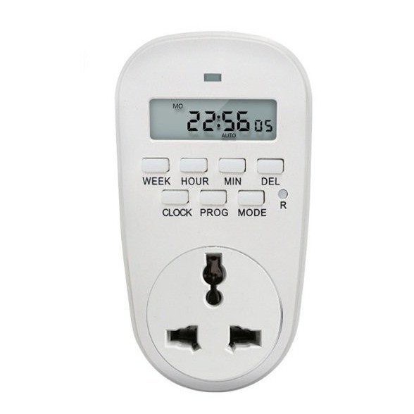 Ổ cắm hẹn giờ thiết kế nhỏ gọn, có thể cắm với nhiều loại phích cắm khác nhau.