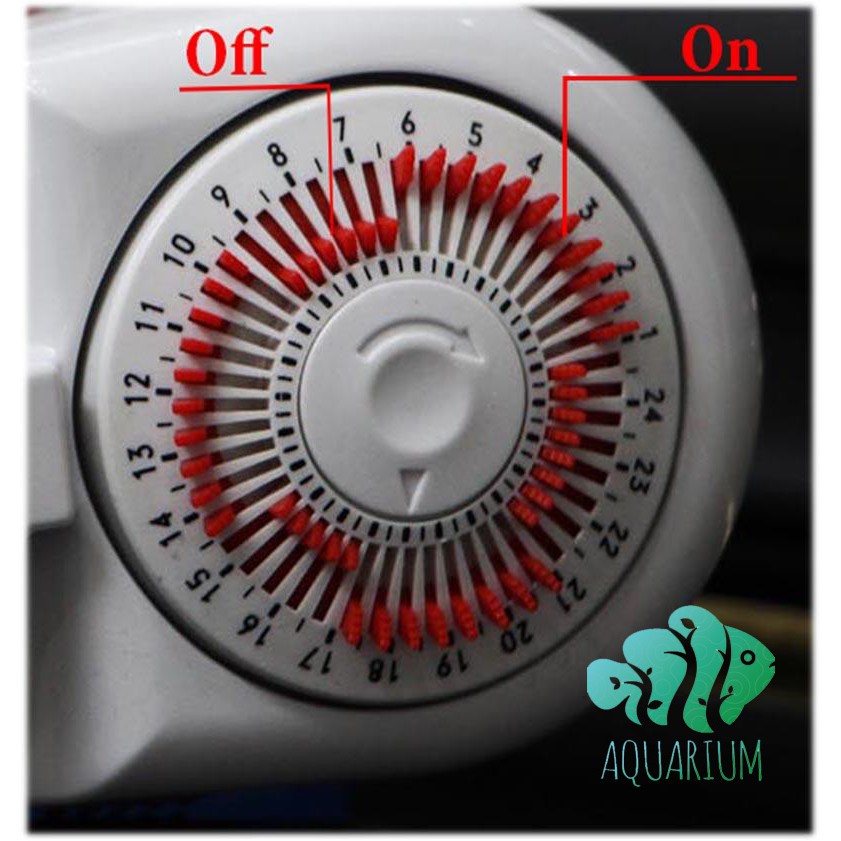 Có 48 nấc gạt cho 24h, mỗi nấc gạt tương đương 30 phút, gạt vào trong là nghỉ (off), gạt ra ngoài là bật (on)