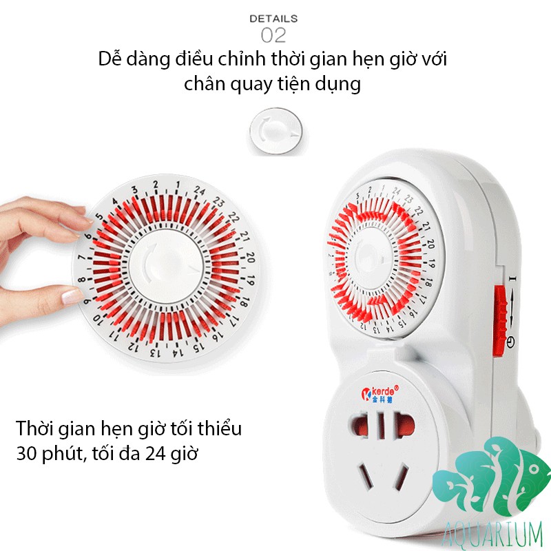 Thiết kế nhỏ gọn, chất liệu bền đẹp, phù hợp hầu hết các loại chân cắmHoạt động bằng cơ, hẹn giờ bật tắt các thiết bị điện một cách linh hoạt theo chu kỳ