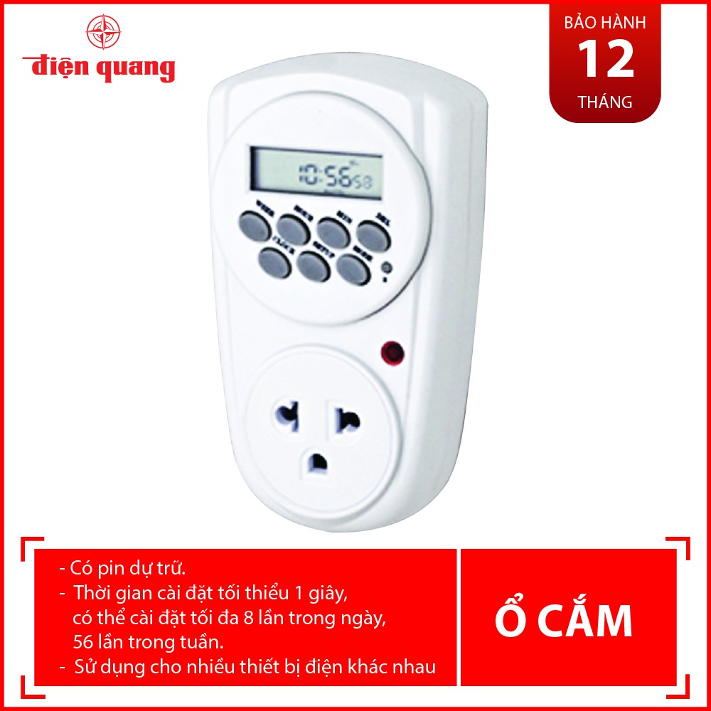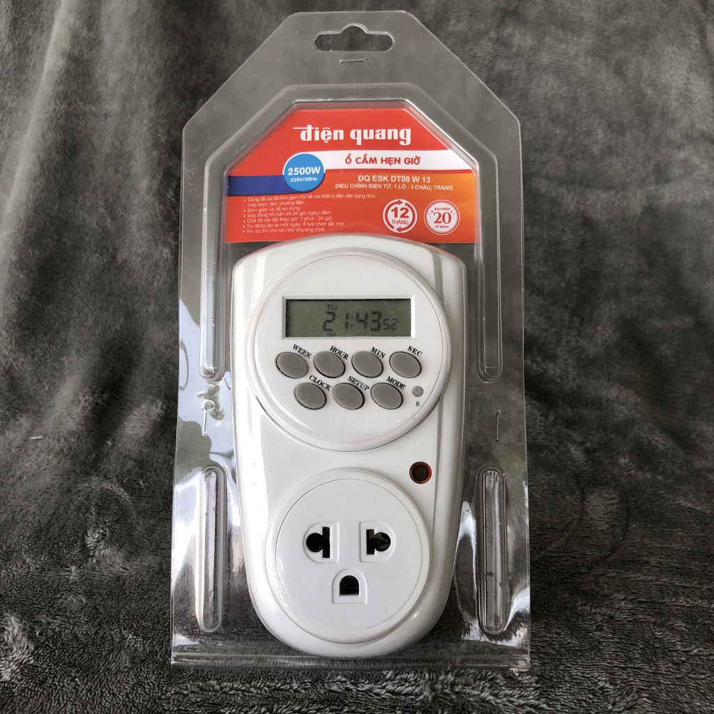 Thiết Bị Điện Gia Dụng > Mạch điện & Phụ tùng > Ổ cắm điện & Dây nối || Ổ cắm hẹn giờ Điện Quang ĐQ ESK DT08 W 13 (Điều chỉnh điện tử, 1 lỗ - 3 chấu, trắng)Còn hàng