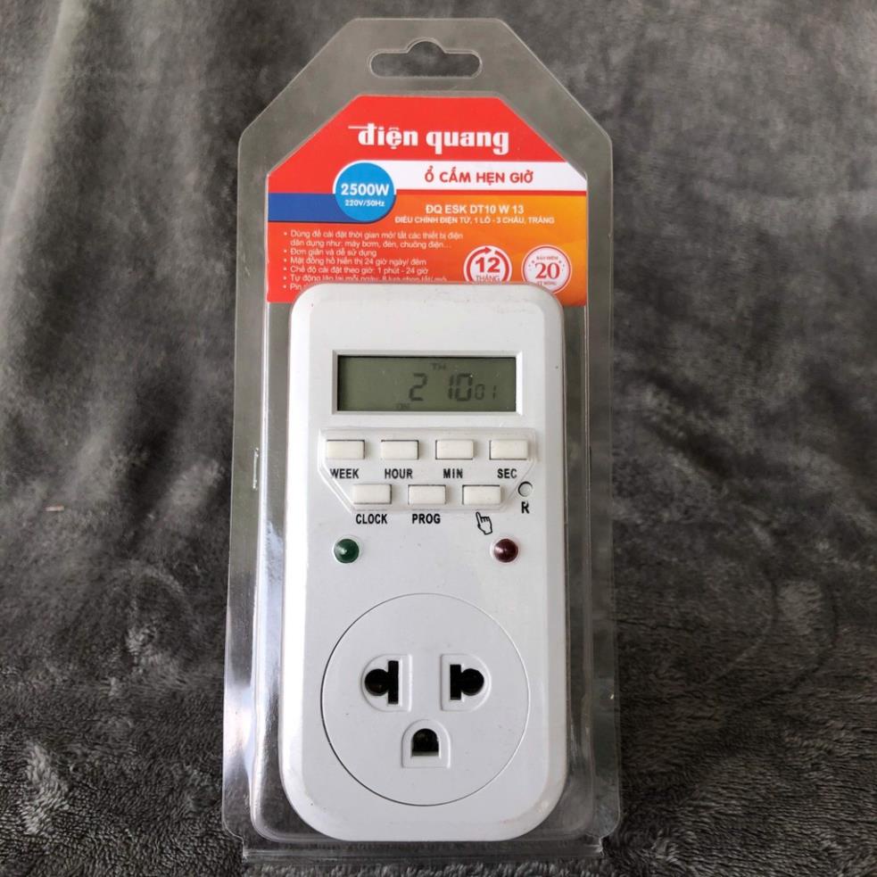 Thiết Bị Điện Gia Dụng > Mạch điện & Phụ tùng > Ổ cắm điện & Dây nối || Ổ cắm hẹn giờ điện tử cao cấp Điện Quang, có pin dự phòng ĐQ ESK DT10W13Còn hàng