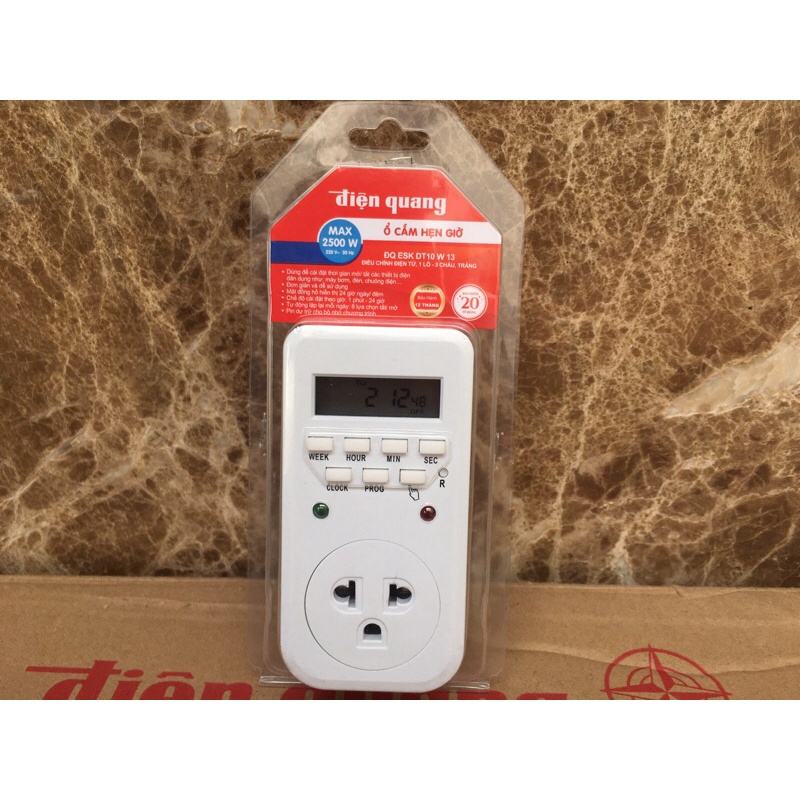 Thiết Bị Điện Gia Dụng > Mạch điện & Phụ tùng > Ổ cắm điện & Dây nối || Ổ cắm hẹn giờ điện tử cao cấp Điện Quang, có pin dự phòng ĐQ ESK DT10W13Còn hàng