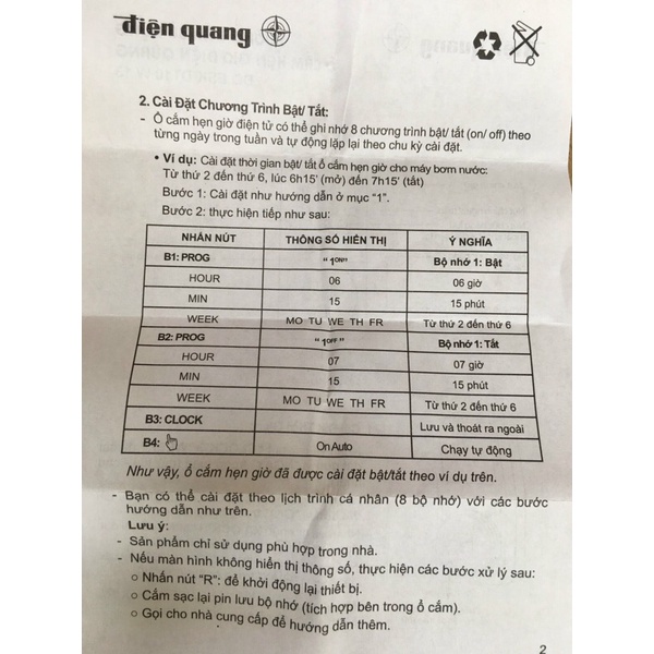 - Thời gian cài đặt tối thiểu 1 giây, có thể cài đặt tối đa 8 lần trong ngày, 56 lần trong tuần