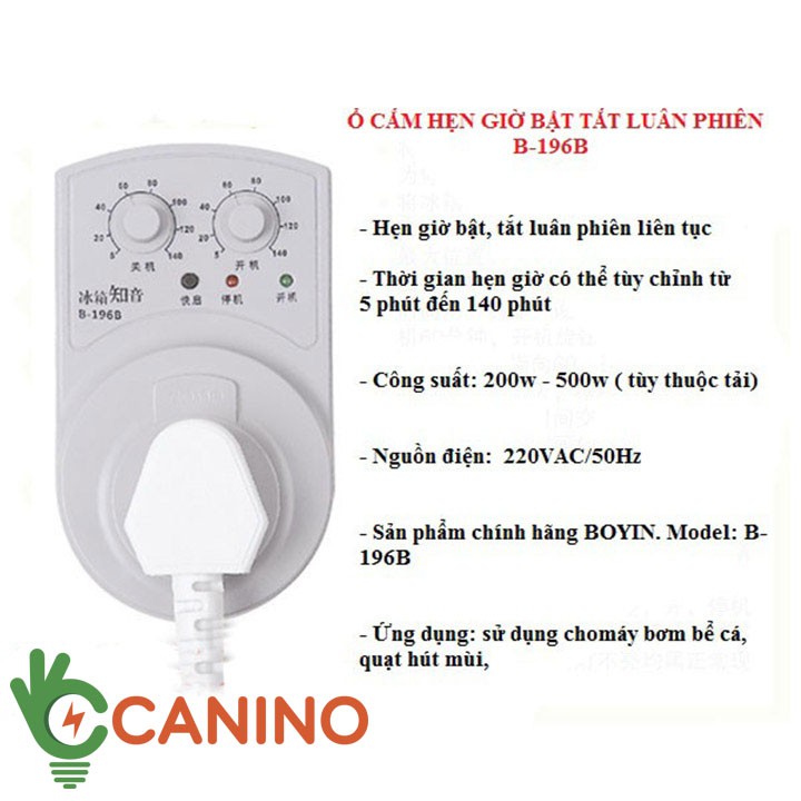 Giới thiệu Ô cắm hẹn giơ FREESHIP[ GÍA HỦY DIỆT ] Ổ cắm hẹn giờ bật tắt luân phiên B-196B
