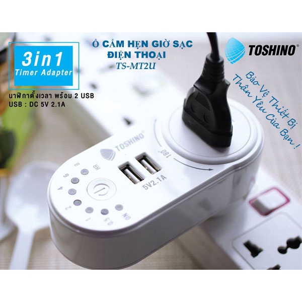Ổ CẮM HẸN GIỜ SẠC ĐIỆN THOẠI TOSHINO – TS – MT2U