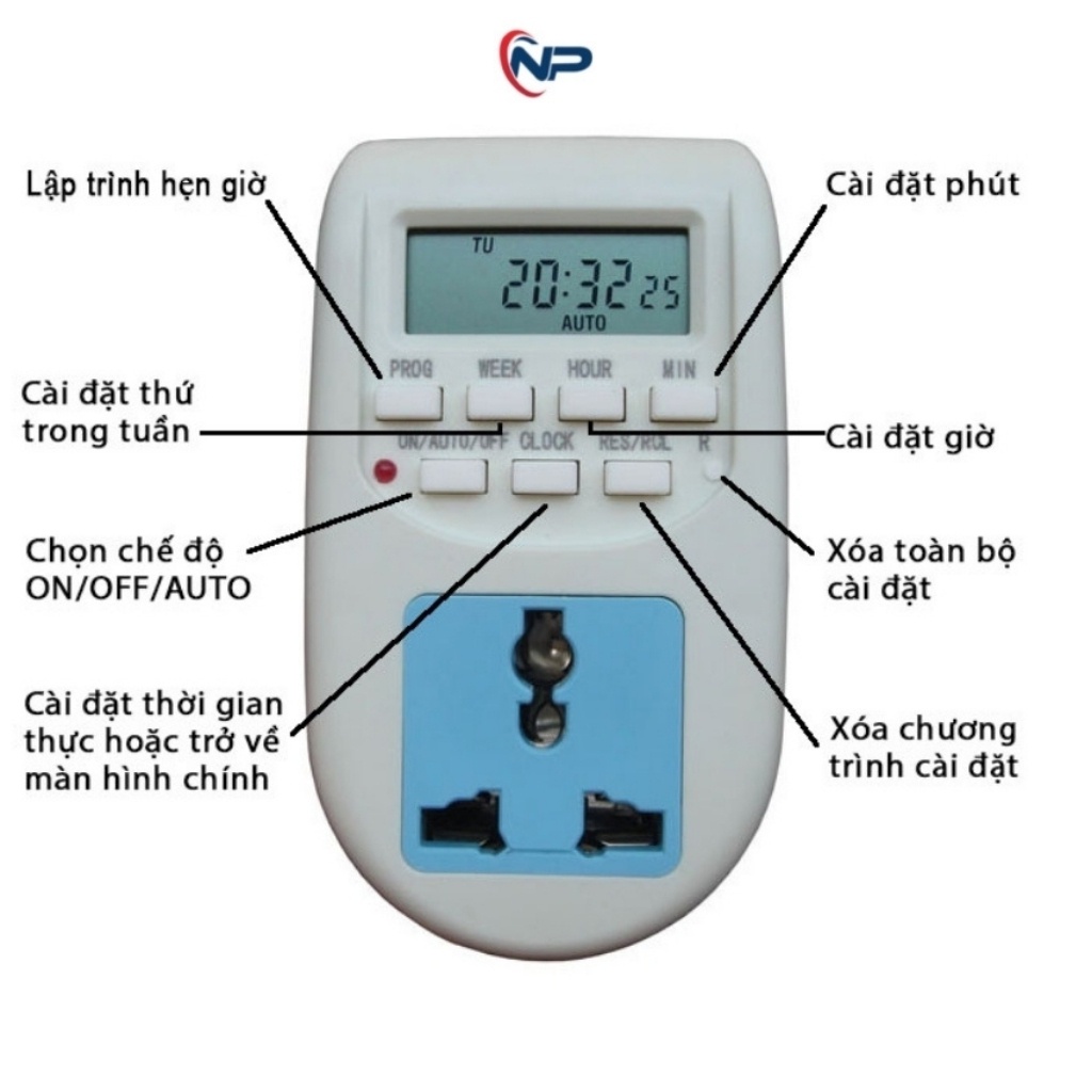 Giới thiệu Ổ Cắm Hẹn Giờ SHOPNHATPHONG Ổ Cắm Điện Tử bật tắt tự động 16 chương trình al06, công tắc hẹn giờ, ổ cắm đa năng