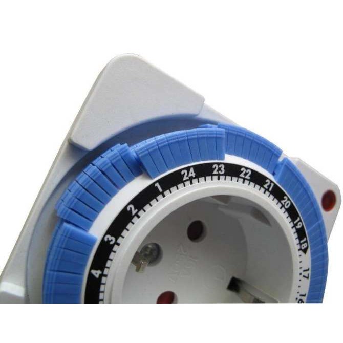 Ổ cắm hẹn giờ tắt mở dạng cơ là loại công tắc thời gian dạng cơ ( còn gọi là Timer 24h dạng cơ), dùng để cài đặt thời gian tắt/ mở tự động các thiết bị điện dân dụng theo thời gian mong muốn.Ổ cắm có thể hẹn giờ tắt/ mở nhiều lần cho thiết bị trong ngày và lặp lại hàng ngày. Sử dụng được cho các thiết bị điện có công suất thấp như máy fax, tivi, máy tính, đèn bảng hiệu nhỏ , thiết bị wifi, quạt máy, sạc điện thoại hoặc các thiết bị tương tự….. Giúp tiết kiệm điện, giảm công theo dõi, thiết bị điện được bảo vệ và bền hơn, tránh cháy nổ…