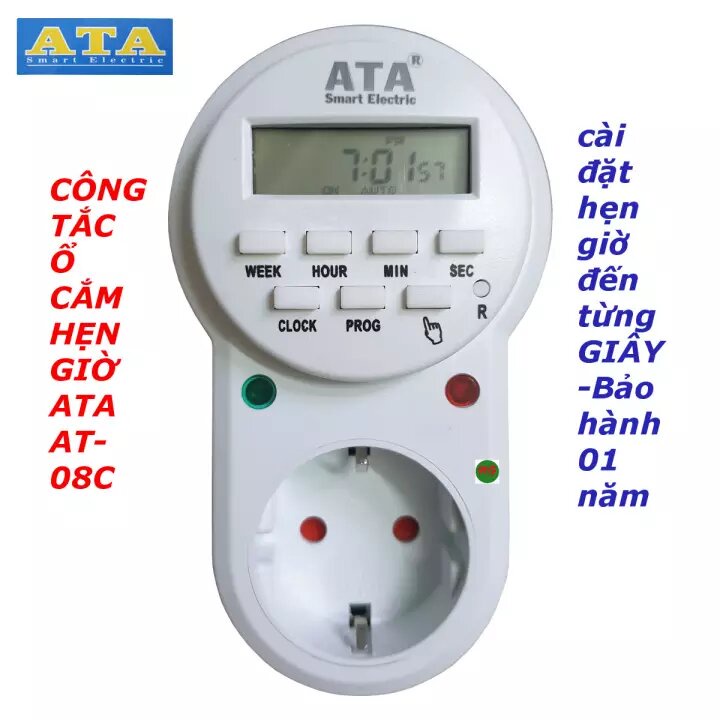 Thiết Bị Điện Gia Dụng > Mạch điện & Phụ tùng > Ổ cắm điện & Dây nối || Ổ cắm hẹn giờ tắt mở thiết bị điện kiểu điện tử chỉnh được giây ATA AT-08CCòn hàng